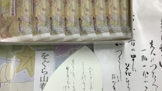 小倉山荘の煎餅をいただきましたお心遣いありがとうございます